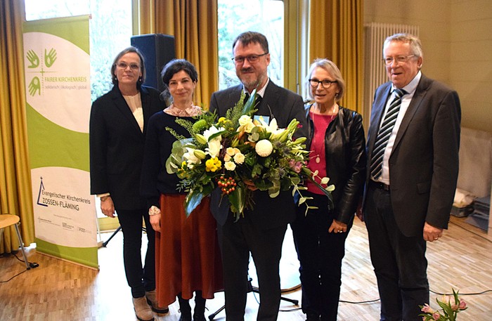 Es war eines der wegweisenden Themen auf der Herbsttagung der Kreissynode des Evangelischen Kirchenkreises Zossen-Fläming: die erneute Auszeichnung als "Fairer Kirchenkreis". Pfarrerin Barbara Neubert, Referentin beim Berliner Missionswerk überreichte am Samstag in Mahlow die entsprechende Urkunde an die Präses Miriam Wojakowska.