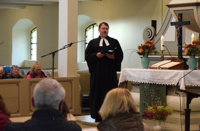 Nico Steffen während der Predigt in der Dreifaltigkeitskirche Zossen
