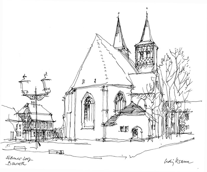 Im Ruhestand hat er dann das Zeichnen als Hobby entdeckt. Gerade die Kirchen faszinieren ihn dabei besonders.
